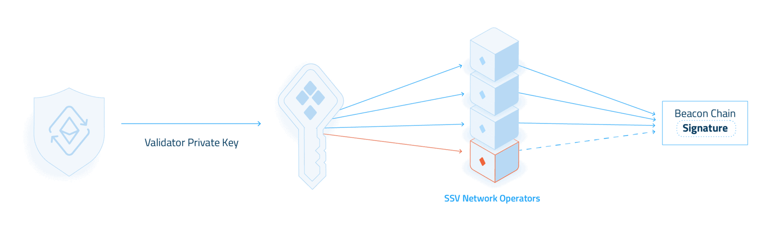 En caso de que uno de los cuatro operadores falle (suponiendo un cluster de 4), los otros tres podrán igualmente realizar las tareas de firma en la BeaconChain.